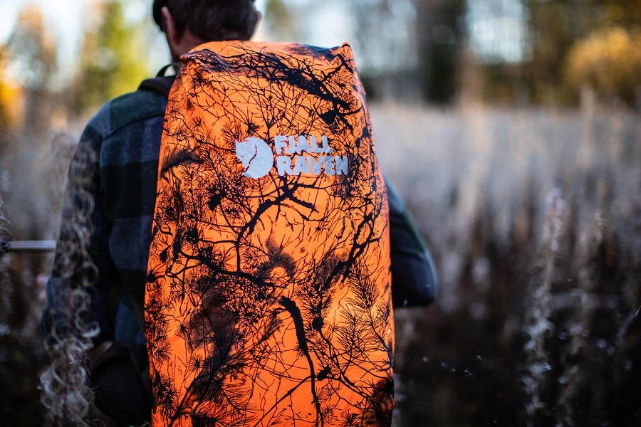 Regenschutz mit getapten Nähten passend für Rucksäcke mit 16 bis 28 Liter Volumen – wie zum Beispiel Singi 28 und Singi Stubben, auch mit angehängten Seitentaschen. Durch die Sicherheitsfarbe mit Tarnmuster ist er deutlich sichtbar für andere Jäger, aber schwer zu entdecken für die Wildtiere. Dank elastischem Tunnelzug sitzt die Hülle optimal und durch den Haken ist sie sicher am Rucksack befestigt, um bei starkem Wind nicht weggeweht zu werden. Die weiße Innenseite lässt sich beim Jagen sogar im Schnee nach außen wenden.