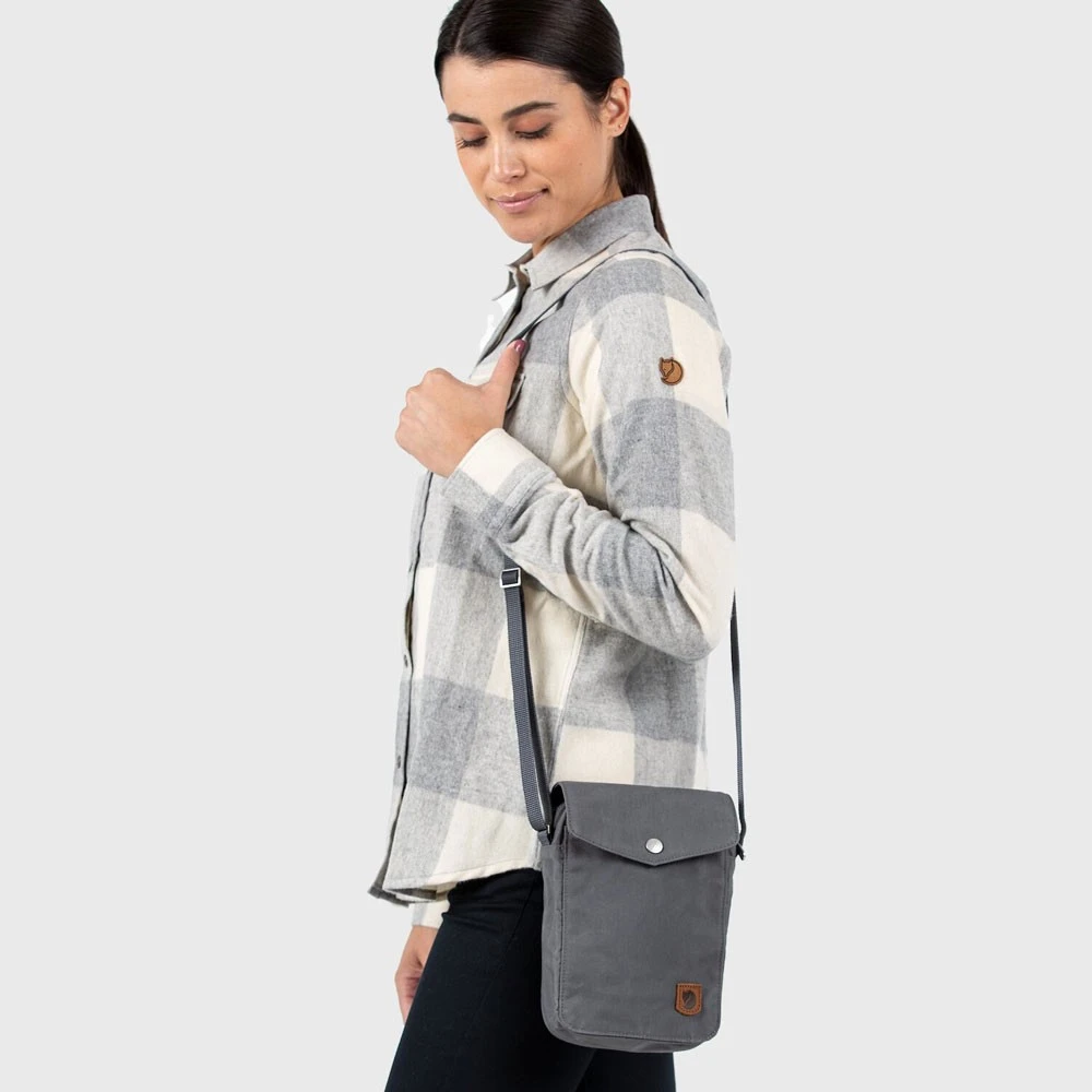 Praktische kleine Umhängetasche aus langlebigem und wasserabweisendem G-1000 HeavyDuty Eco S, eine etwas größere Version der beliebten Pocket-Tasche. Genug Platz für ein Taschenbuch oder ein kleines Tablet. Ideal auf Reisen, wenn es nur auf das Nötigste ankommen soll. Praktisches Smartphone-Fach aun der vorderseite. Kann mit Greenland Wax einfach nachimprägniert werden.
