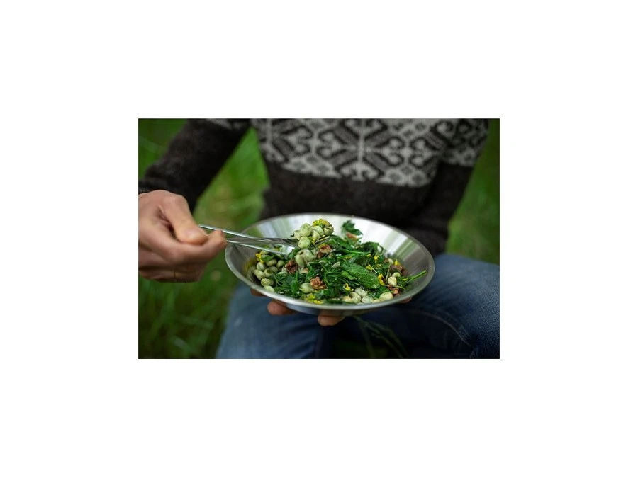 Haltbarer und unzerbrechlicher CampFire-Teller aus lebensmittelechtem 18/8-Edelstahl von PRIMUS. 21 cm Durchmesser mit erhöhten Seiten, die das Essen im Freien zudem erleichtern. Natürlich Geschmacksneutral.